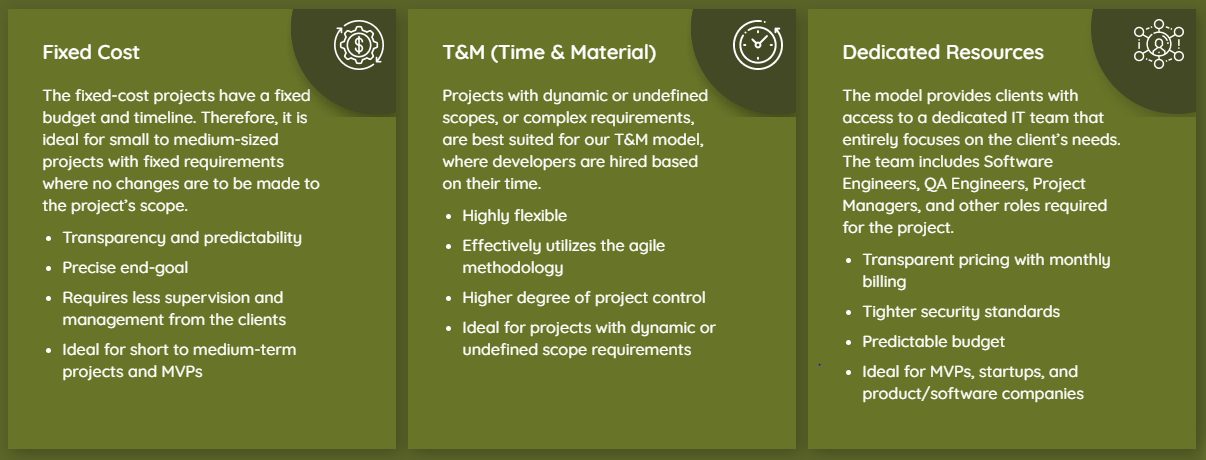 Our customizable engagement models include partnership-based, fixed-price, and hourly hiring options, allowing you to select the approach that best aligns with your needs.